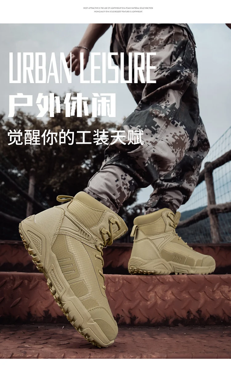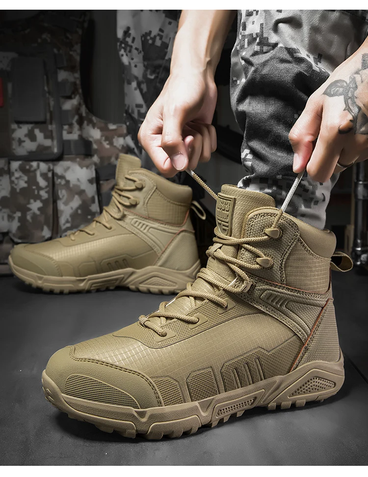 Fujeak Men Tactical Boots Fashion Outdoor Motorcycle Shoes Winter Combat Ankle Boots Work Safety Shoes Special Force Army Boots