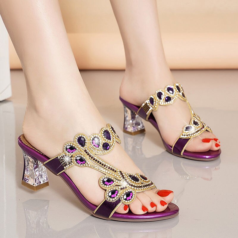 2023 New Fashion Sandals Women's Diamond Sandals High Heel Slippers Non Slip Banquet Shoes Diamond Beach Shoes Women