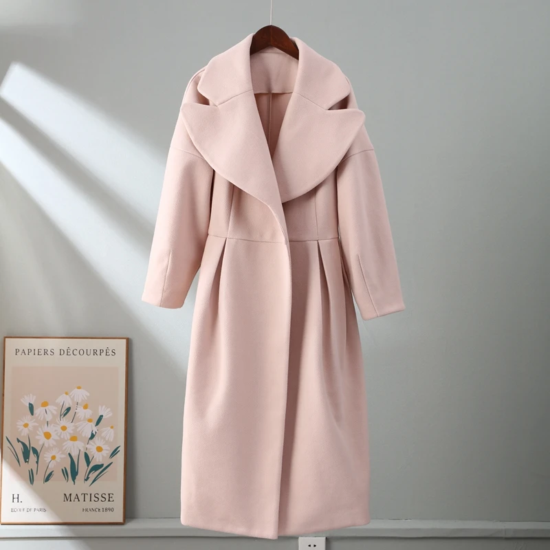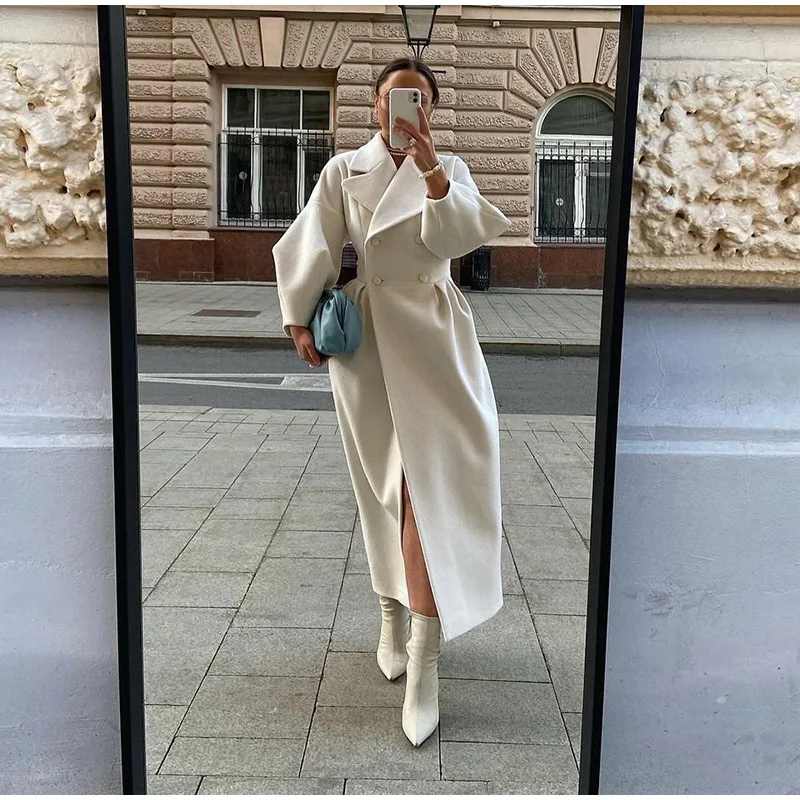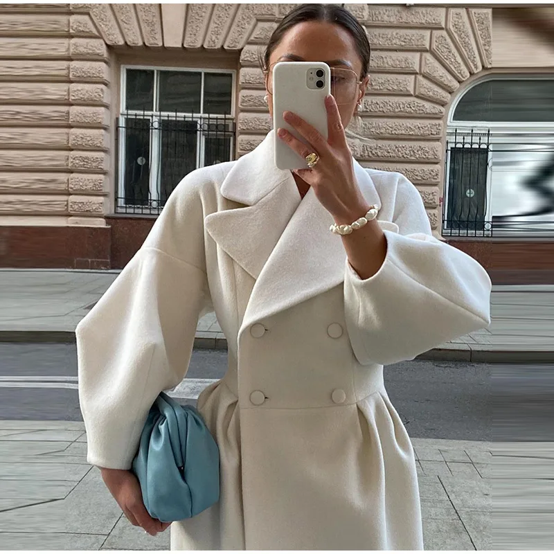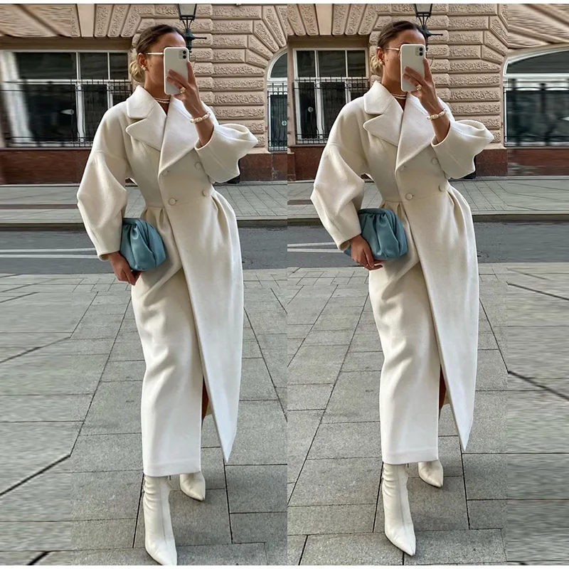 2023 Spring Women Elegant Woolen Blend Coat Fashion Thicken Lapel Double-Breasted Long Jackets Office Lady Cashmere Outerwears