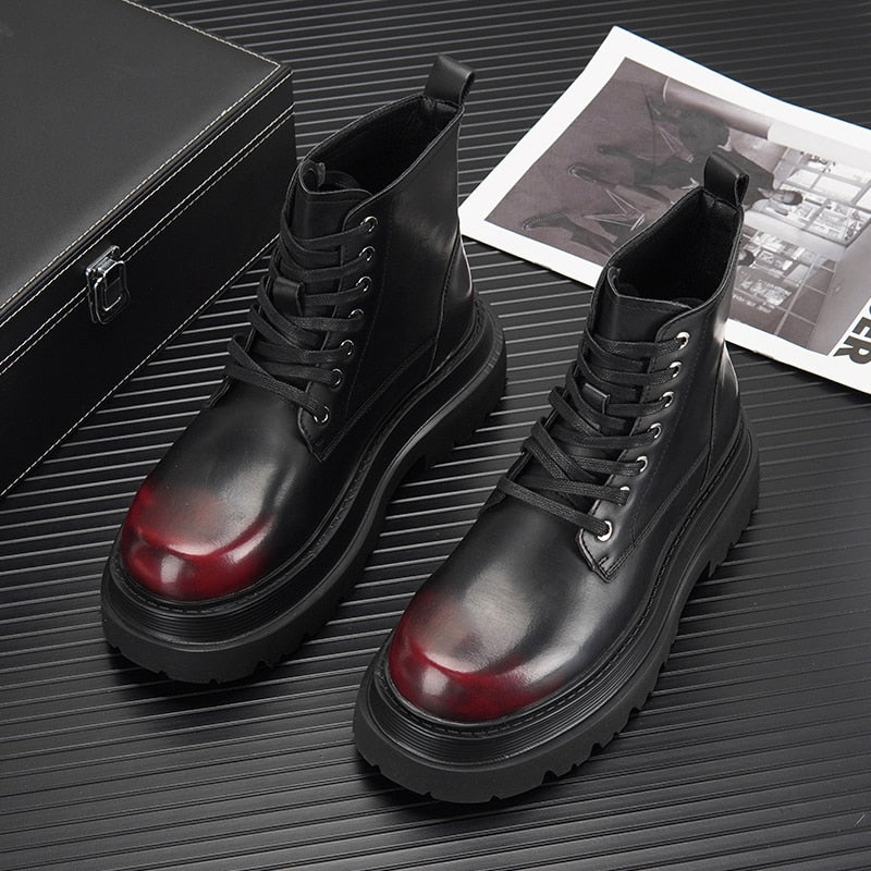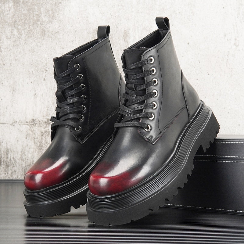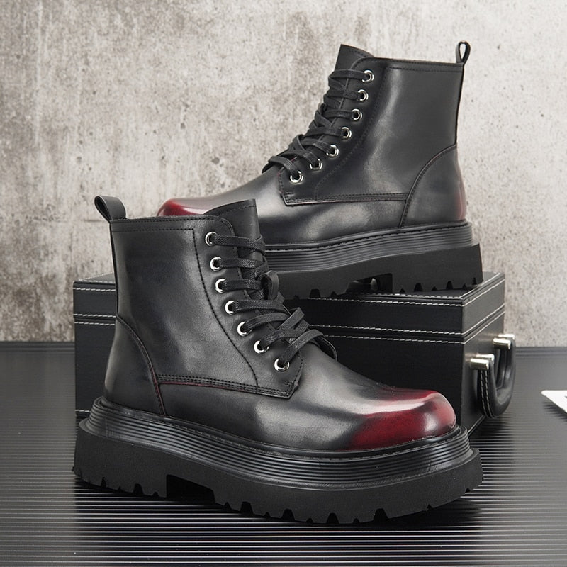 Height Increasing Men Boots Thick Sole Man Platform Designer Shoes Fashion Sneaker For Male Red Black