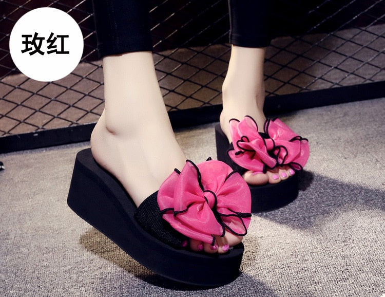 Women Bow Summer Sandals Slipper Indoor Outdoor Beach Shoes summer women's shoes flip flops on the platform