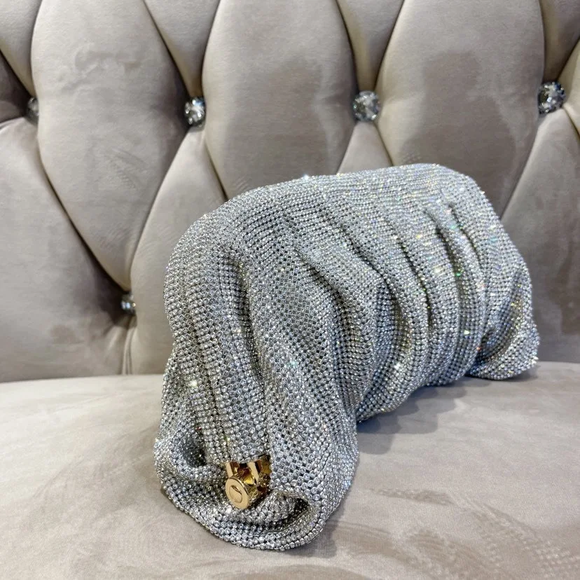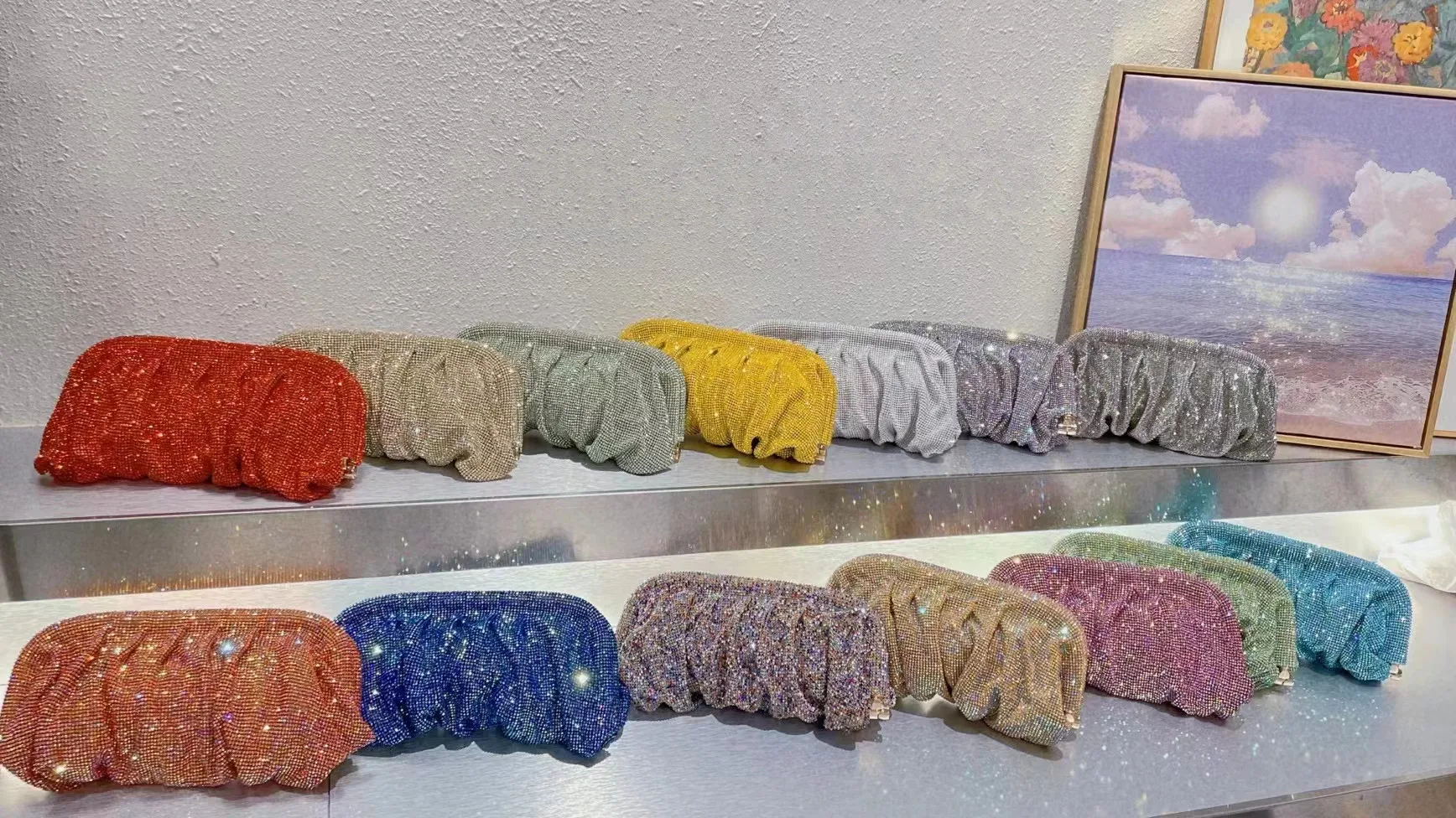20 Colors Rhinestone Evening Clutch Bags Women New Folds Crystal Clip Purses and Handbags Luxury Designer Wedding Party Quality