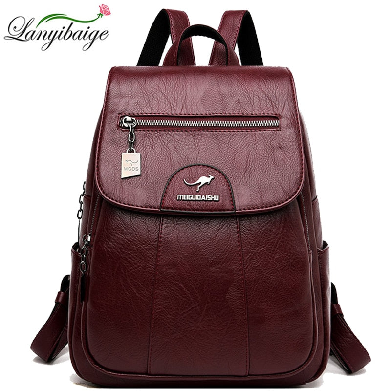 2022 New Women Leather Backpacks High Quality Female Vintage Backpack For Girls School Bag Travel Bagpack Ladies Back Pack