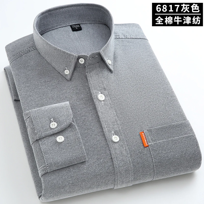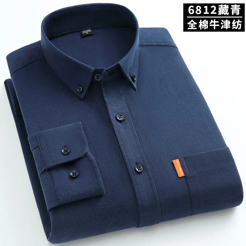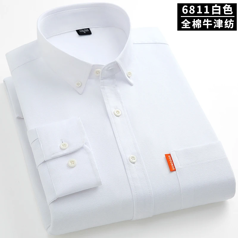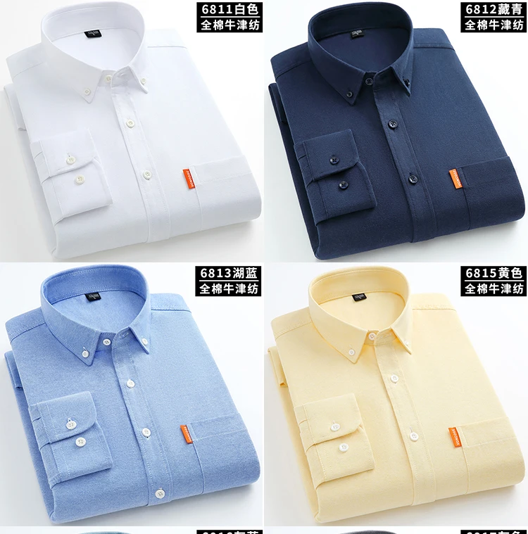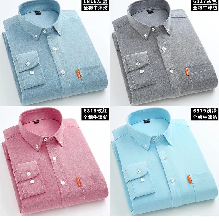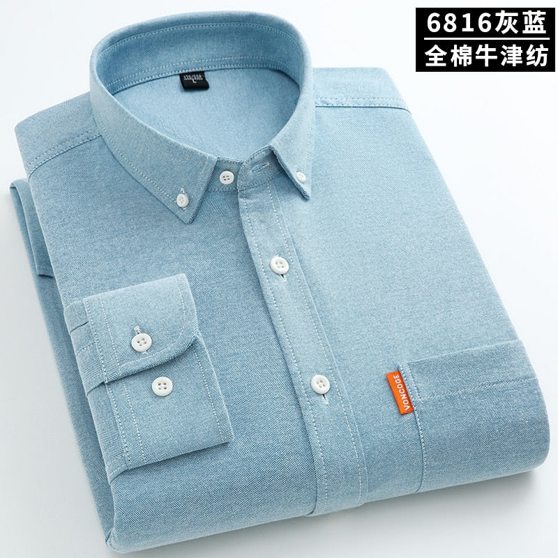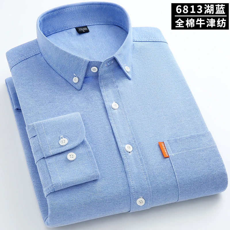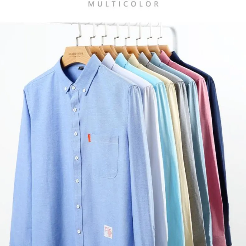 2023 High Quality 100% Cotton Oxford Mens Plaid Shirts Man Embroidery Casual Long Sleeve Shirt for Men White Blue Dress Shirt