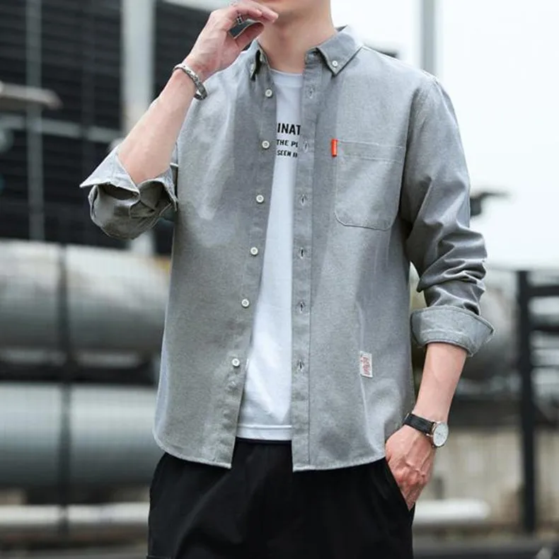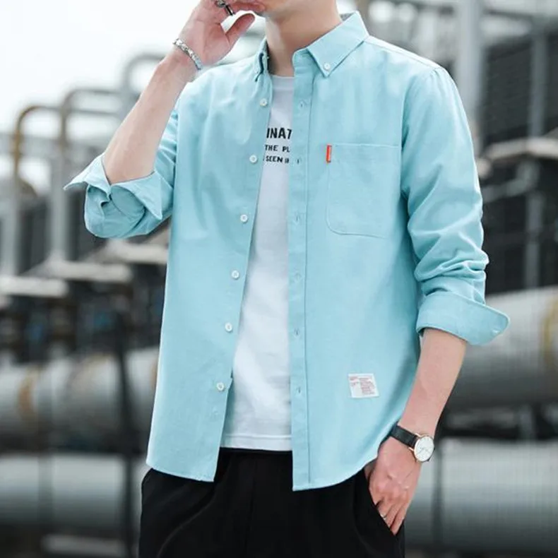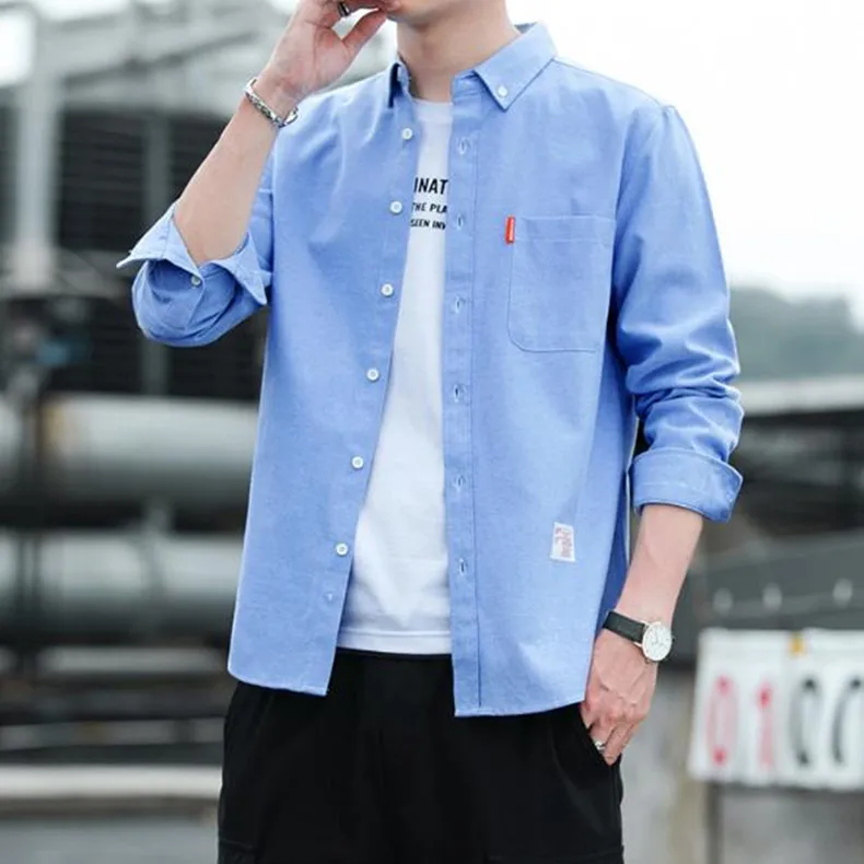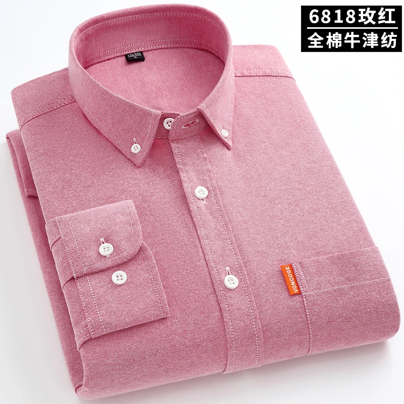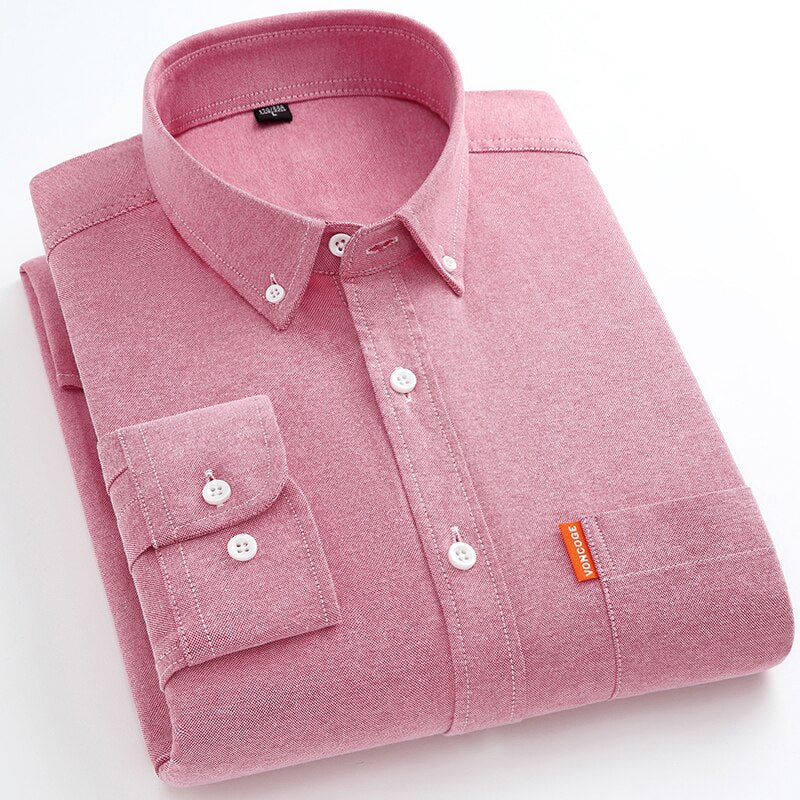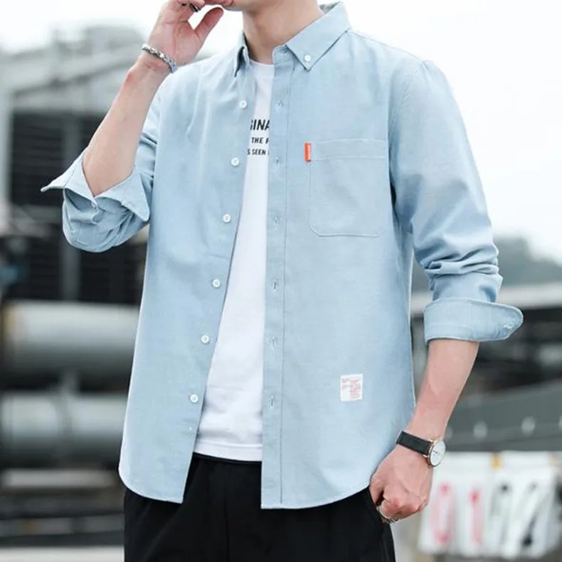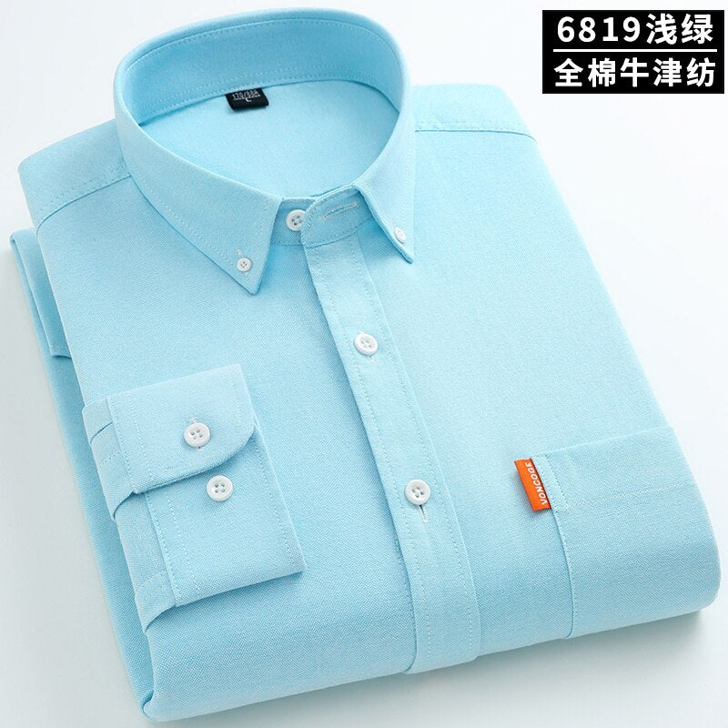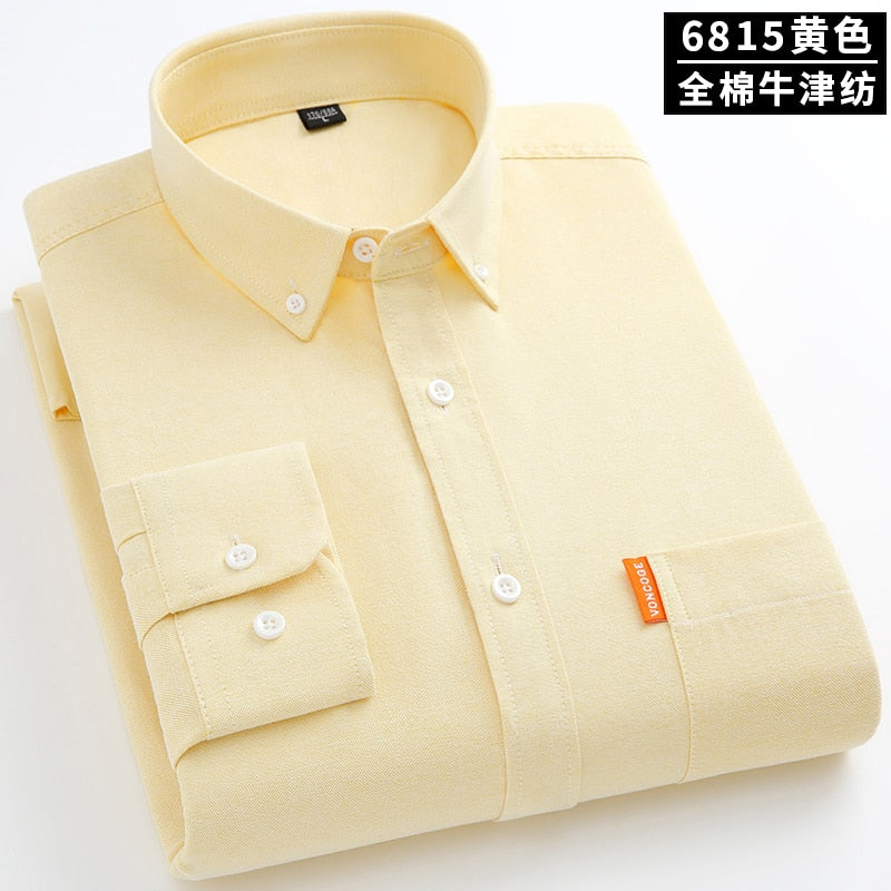 2023 High Quality 100% Cotton Oxford Mens Plaid Shirts Man Embroidery Casual Long Sleeve Shirt for Men White Blue Dress Shirt