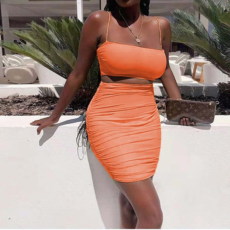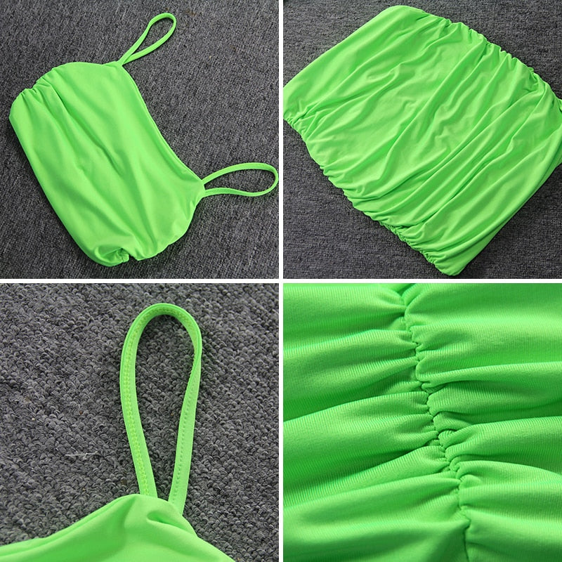Gtpdpllt Ruched White Backless Christmas Dress Two Piece Set Club Outfit Women Spaghetti Strap Crop Top Mini Skirt Sexy Summer