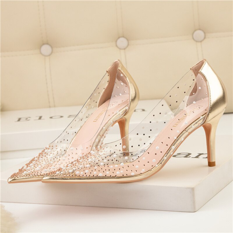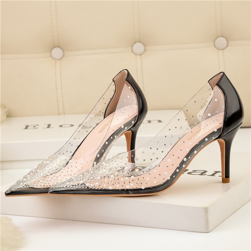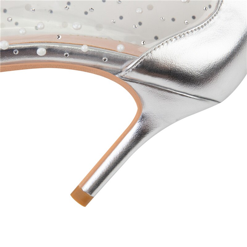 Women 8cm High Heels Glitter Sequins Shorts Heels Evening Pumps Lady Wedding Bridal Silver PVC Transparent Escarpins Party Shoes