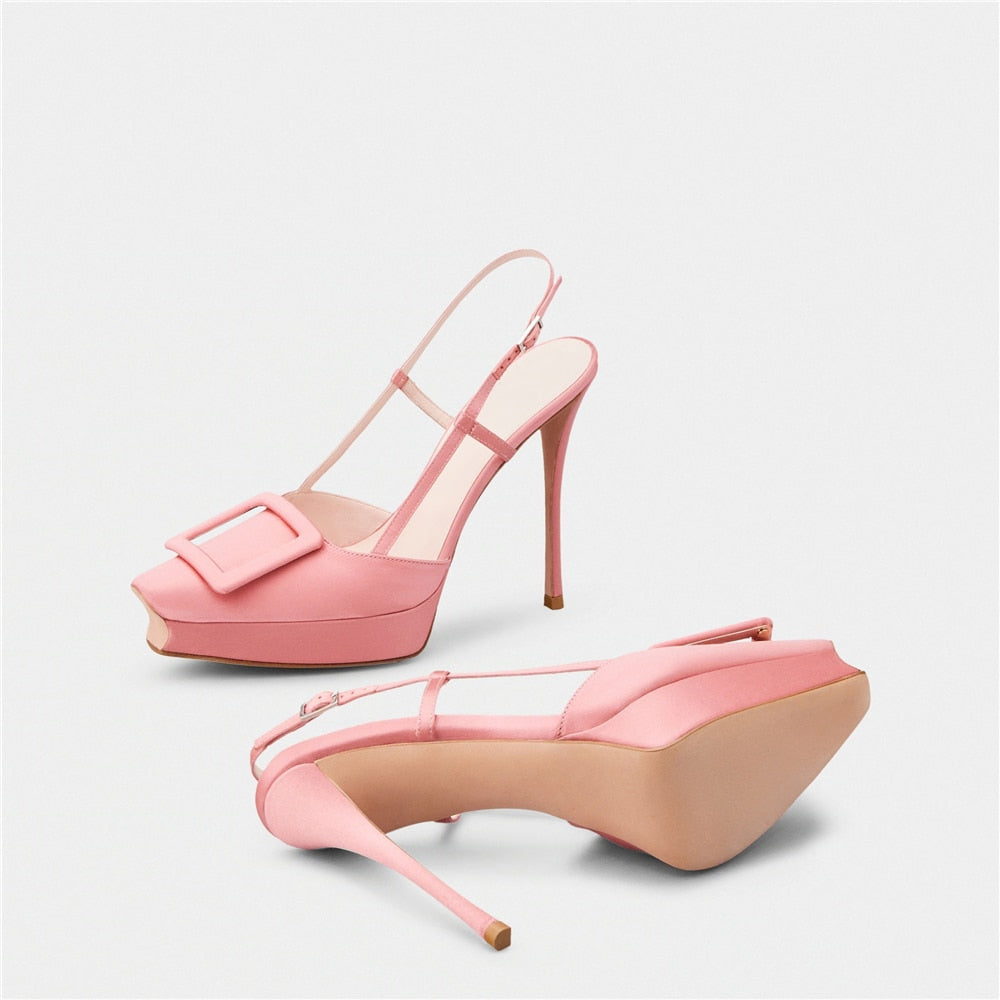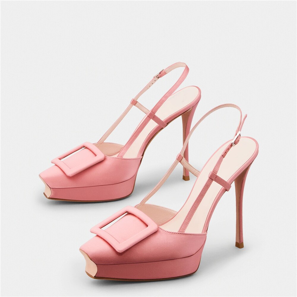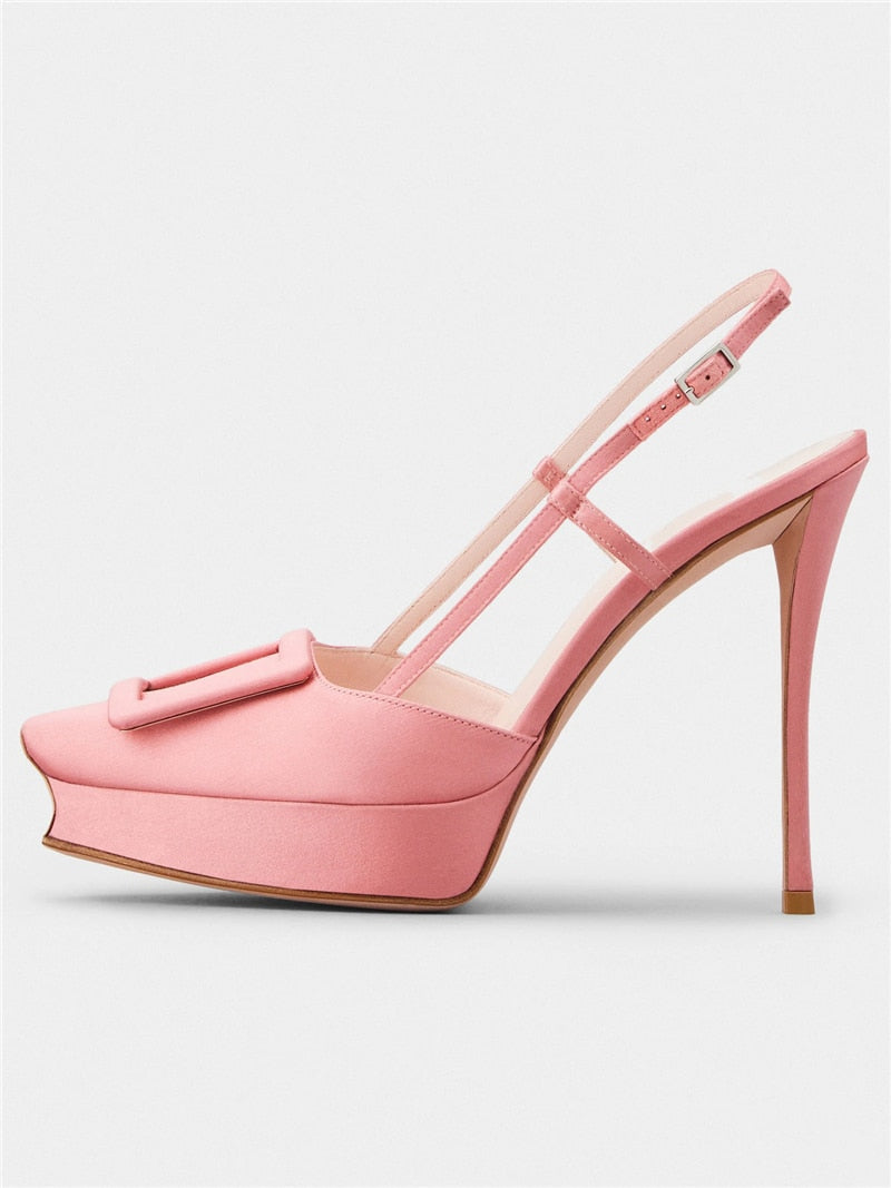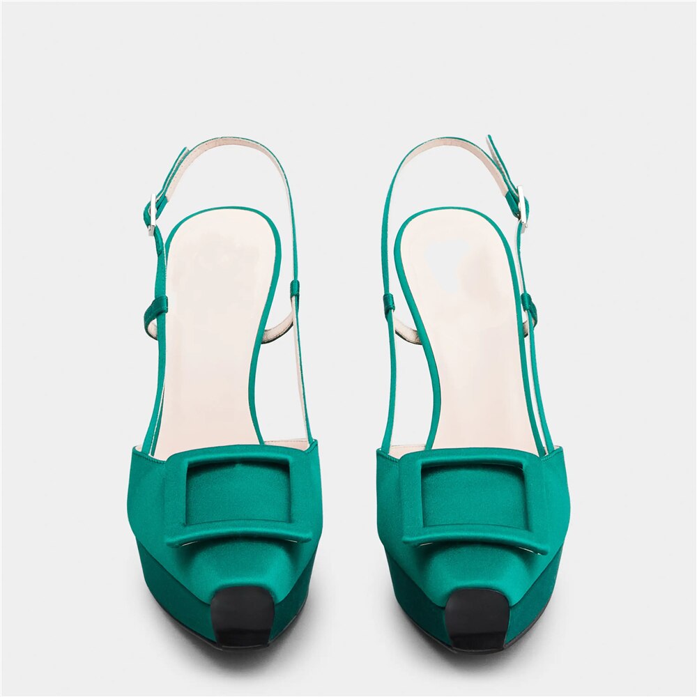 Women Shoes Summer New Pointed Toe Platform Stiletto Shoe Fashion Closed Toe Big Buckle Strap High-Heeled Formal Dress Sandals